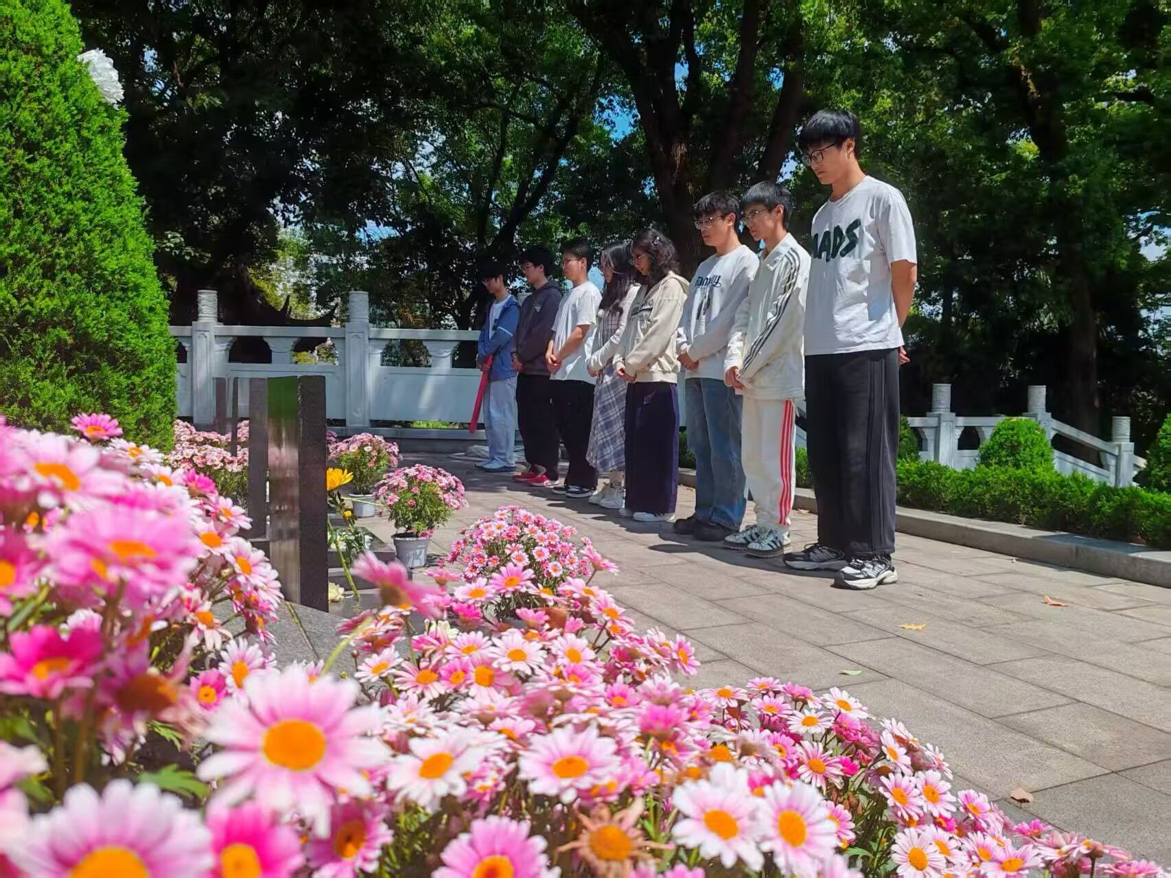 参加活动的全体成员身着素装,佩戴党徽,怀着无比崇敬的心情,在巍然耸立的革命烈士纪念碑前列队肃立。全体人员向为中国人民解放事业和共和国建设事业英勇献身的烈士们默哀三分钟,表达深切的哀思和崇高的敬意。随后,在领誓人的带领下,全体党员面向鲜红的党旗,高举右拳,重温入党誓词。“我志愿加入中国共产党……随时准备为党和人民牺牲一切,永不叛党。”铿锵有力的誓言在陵园上空回荡,表达了新时代青年党员继承先烈遗志、不忘初心、砥砺前行的坚定决心。